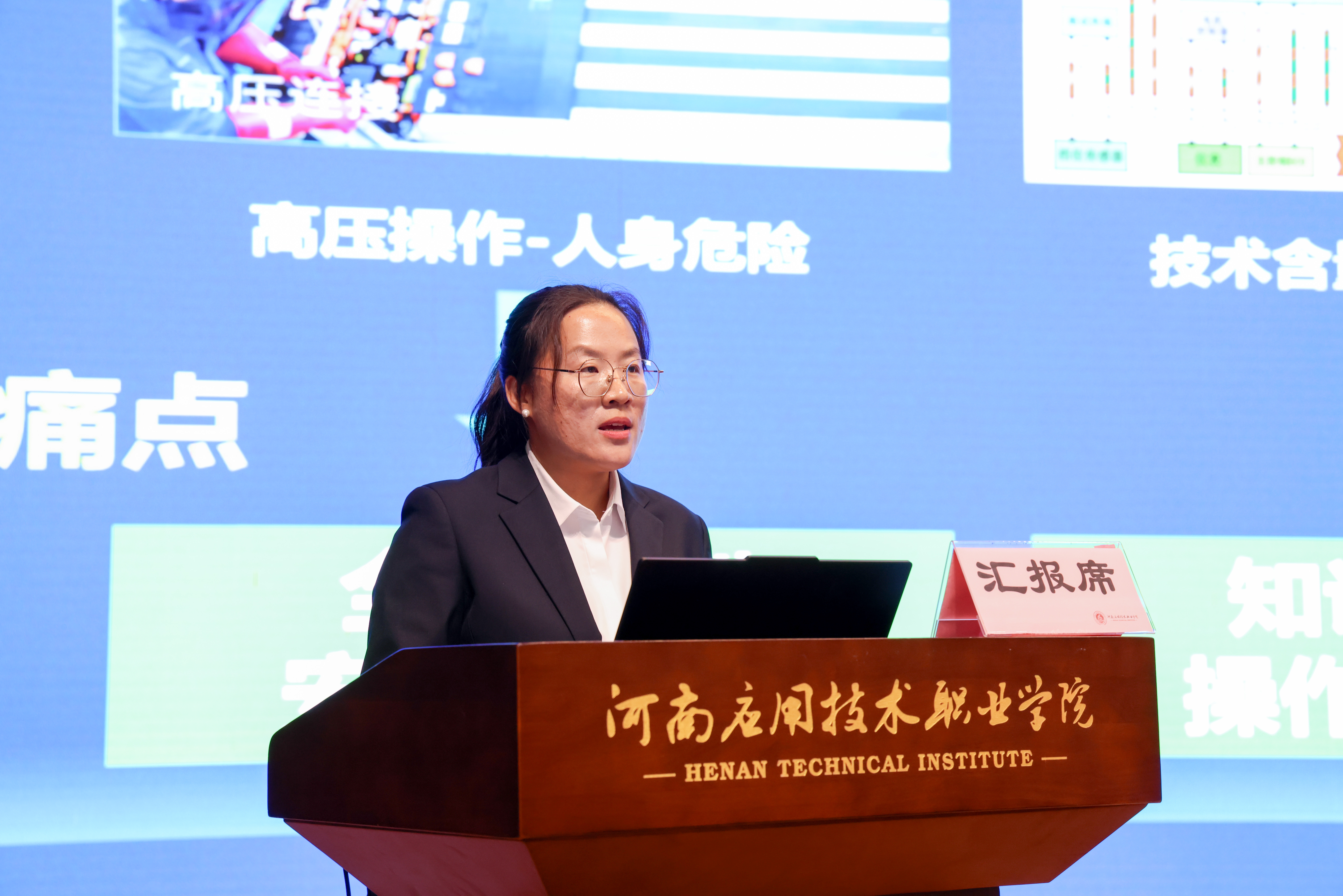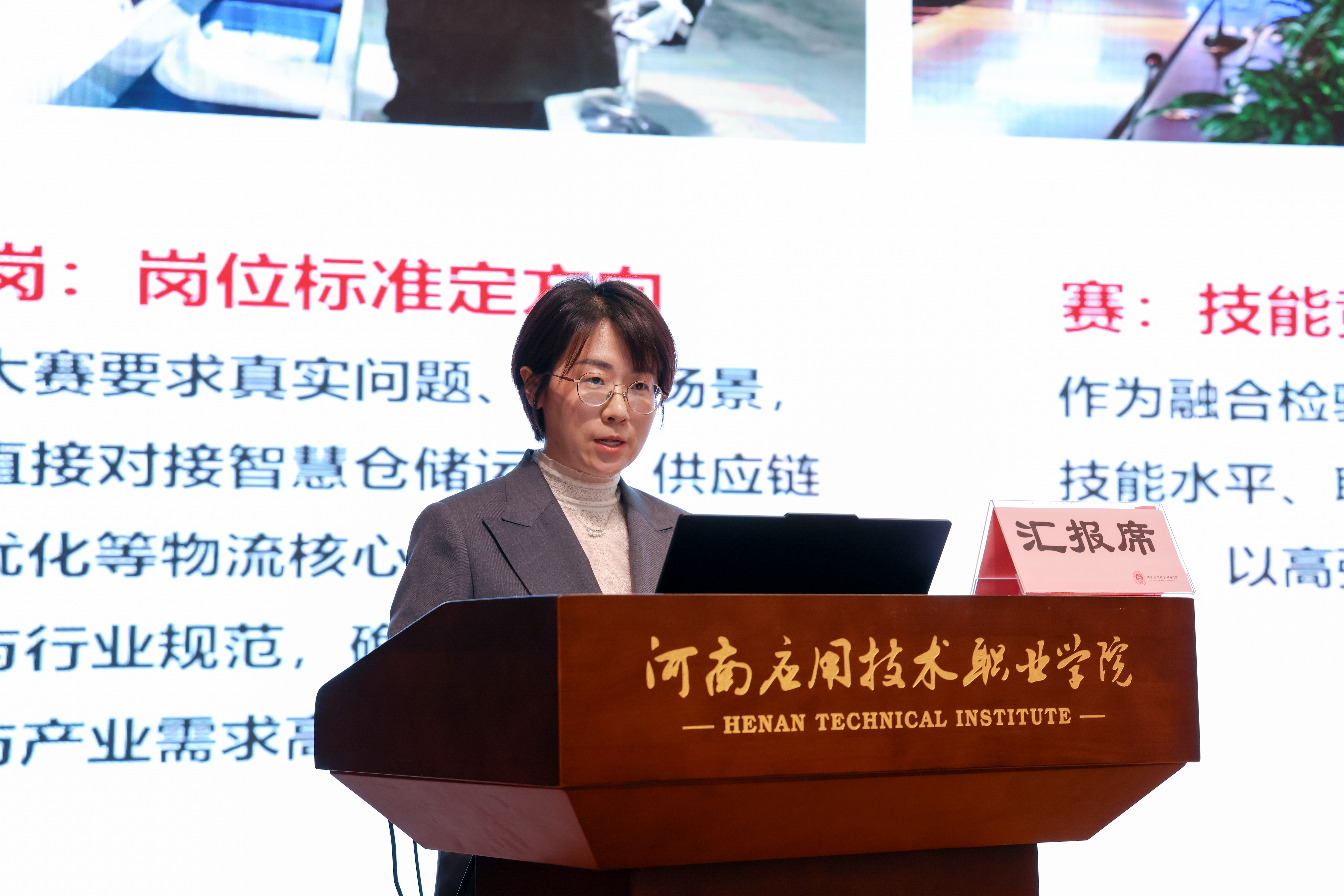 绿色化工与新材料学院李丹娜、康养护理学院冯顺丽、商学院刘傲宇、新能源与智能汽车学院王春燕作为教师代表依次发言。她们结合一年来在学生技能大赛、教学能力比赛、教材建设等方面的心得,分别以《教材筑基,课程铸魂——高质量教材建设与课程建设的协同推进》《2025年世界职业院校技能大赛康复治疗与护理赛道经验分享》《从备赛到夺金——物流与供应链赛道的思考与分享》《创新不止,匠心育人——2025年河南省高校教师教学创新大赛参赛分享》为主题,全方位展示了教育教学改革深耕实践的成果。
