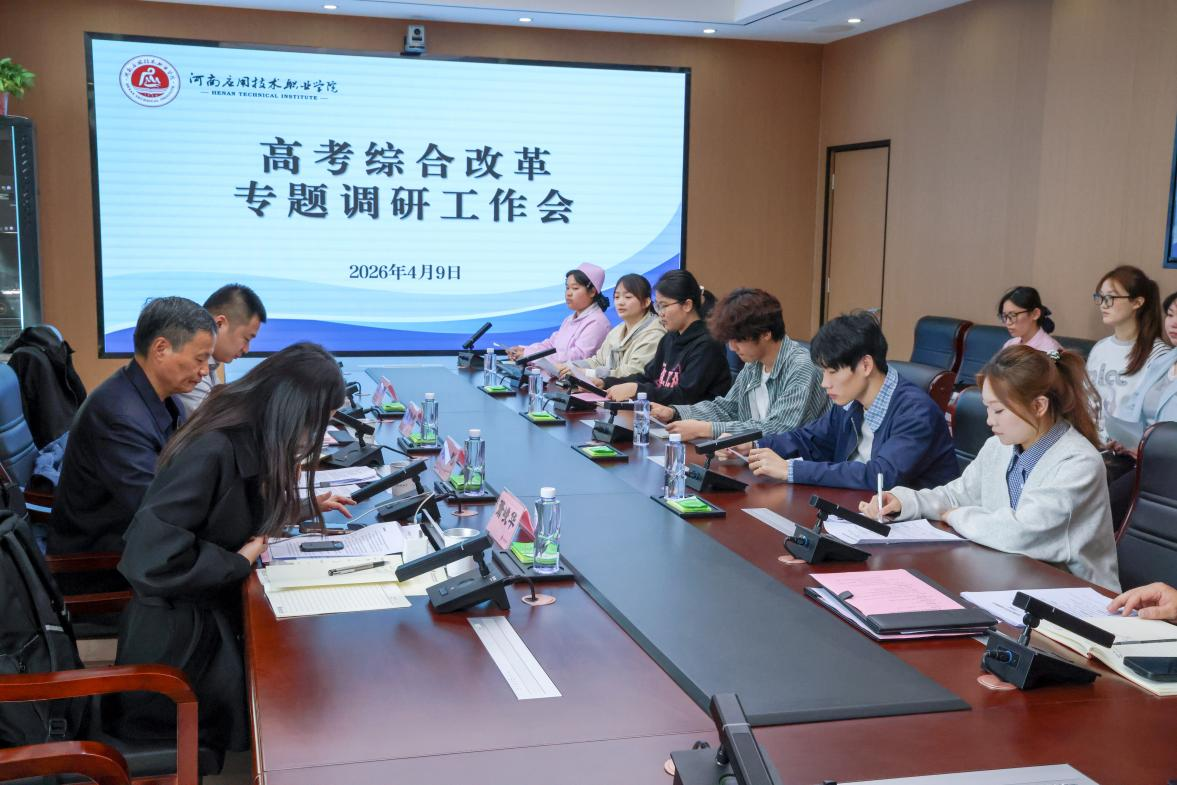为深入了解高考综合改革实施情况,推动高校招生、教学及人才培养工作与改革要求精准对接,4月9日上午,由北京师范大学中国教育与社会发展研究院研究员申继亮,河南省教育厅原党组成员、河南省教育考试院原党委书记刘刚等专家组成的教育部教育考试院调研组莅临我校,开展高考综合改革专题调研工作。我校校长薄新党、副校长黄振中,教务处、招生就业与校企合作处等相关职能部门负责人参加专题调研工作会。会议由黄振中主持。