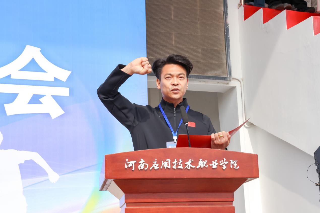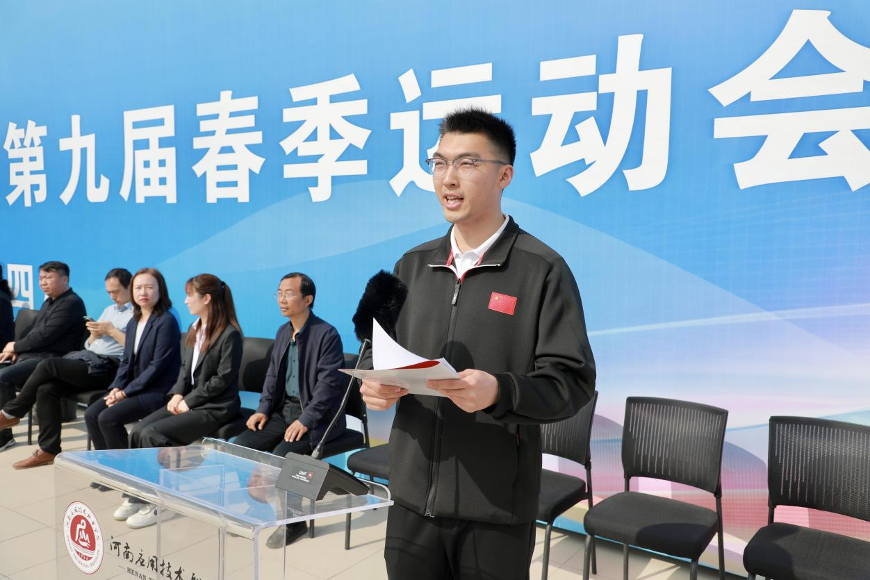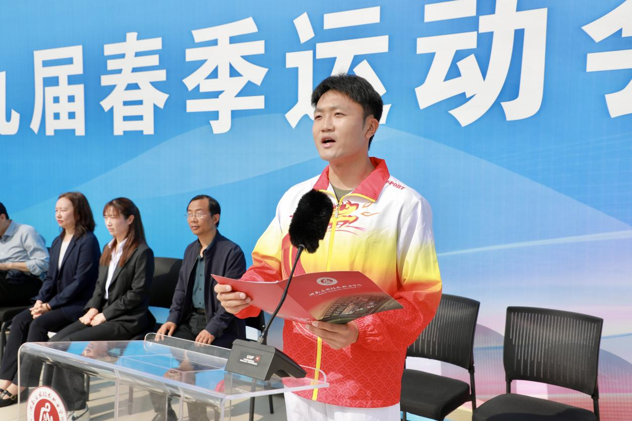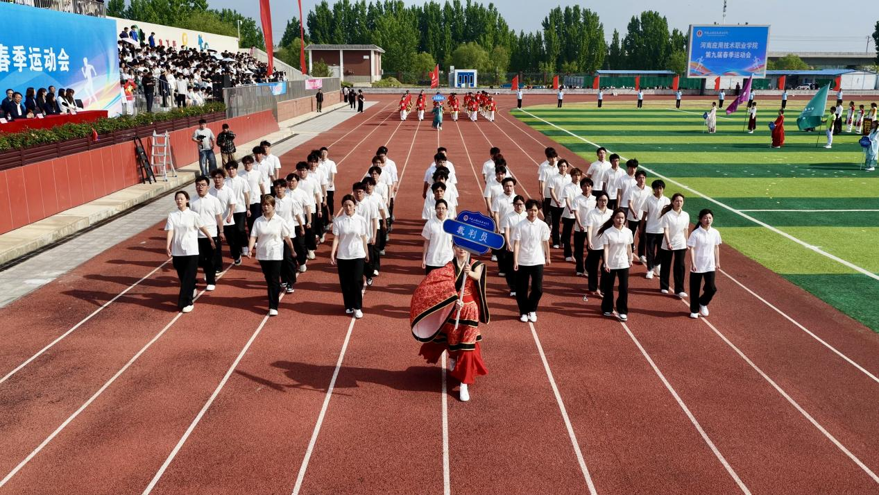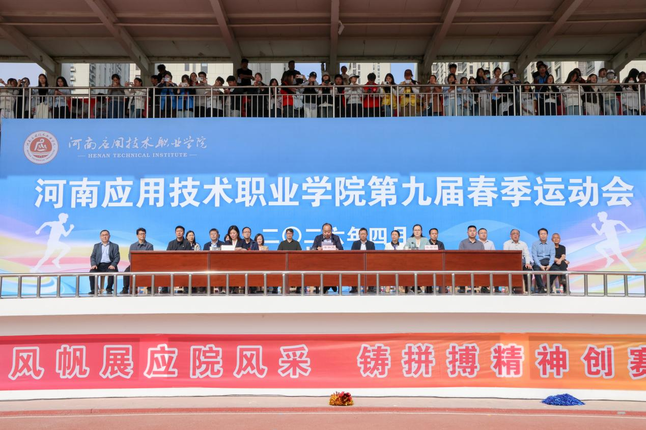 春盈校园,万象更新。4月15日上午,我校第九届春季运动会在郑州、开封两校区同步启幕。全体在校领导班子成员,各部门负责人、二级学院(中心)党政负责人及师生代表齐聚赛场,共赴这场活力与激情交织的体育盛会。党委副书记、工会主席陈君丽、副校长常新中主持开幕仪式。
