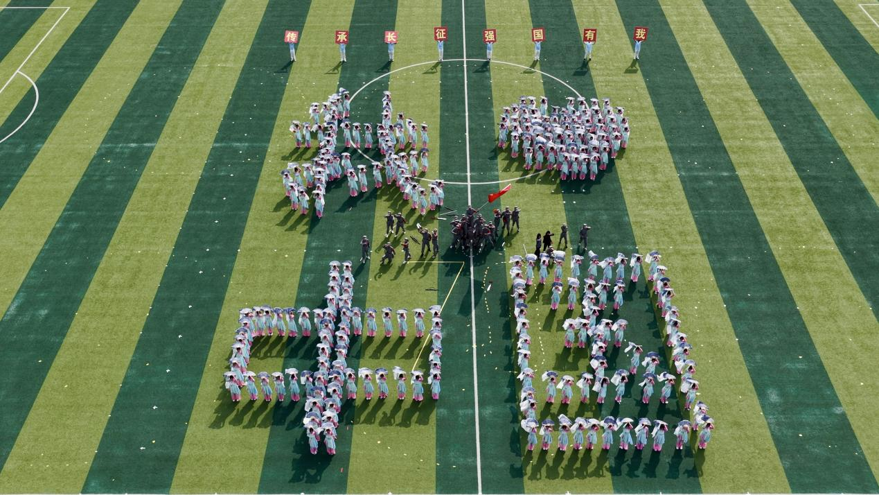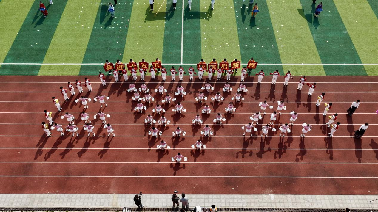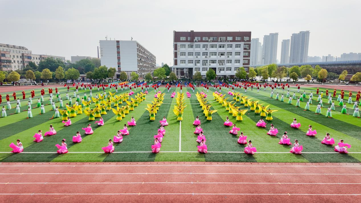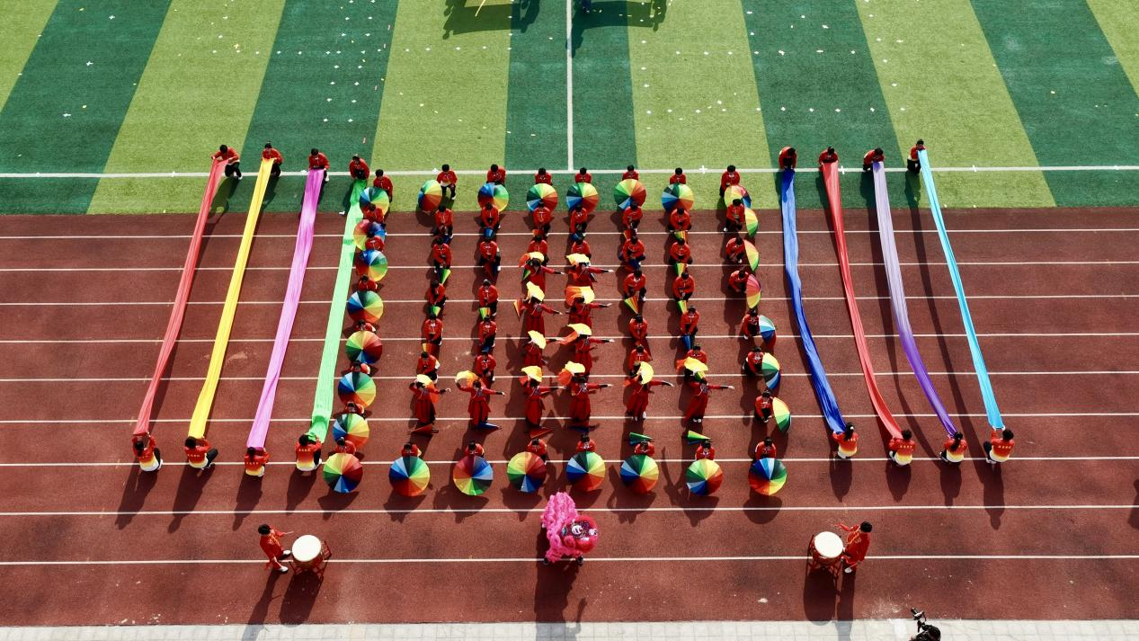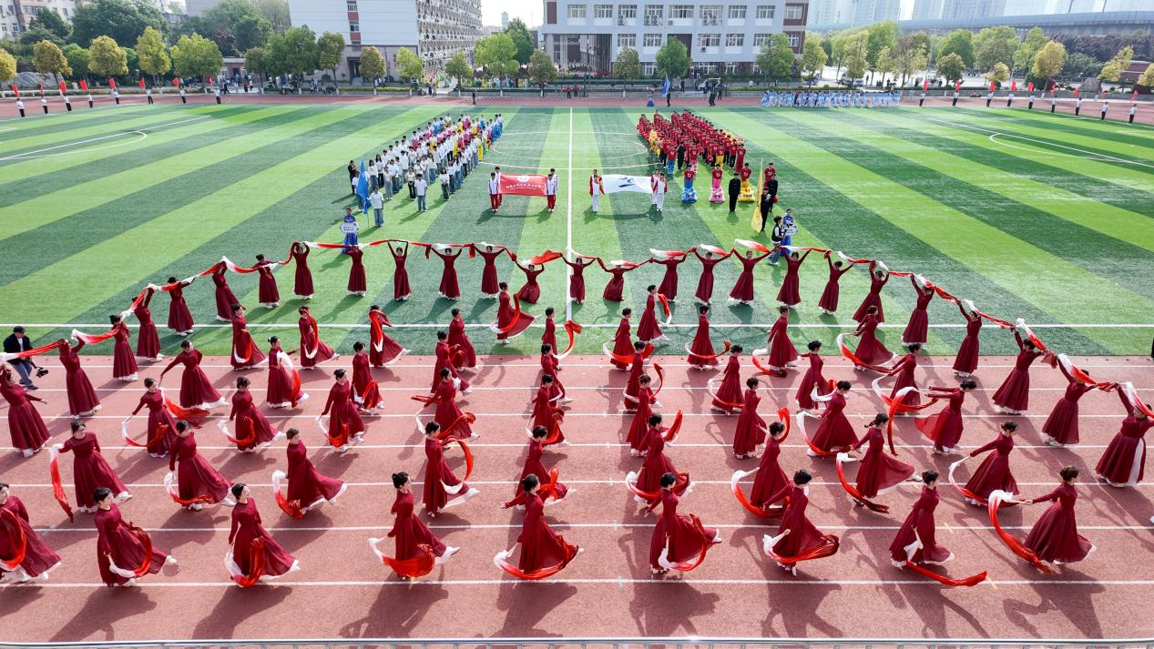 团体操表演环节亮点纷呈。绿色化工与新材料学院献演的《盛世欢歌》层次丰富、灵动多变,欢腾热烈的氛围感染全场;人工智能与信息技术学院带来《四海同心》青春昂扬,以创意编排传递时代担当。经济管理学院以《我的祖国》抒发家国情怀,裙袂与折扇交相辉映,铺展出一幅绚烂画卷;商学院以《七秩启祯·骐骥驰骋》致敬学校七十余载深厚积淀,动作舒展,意气飞扬。