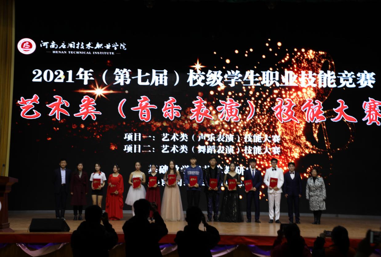 本次大赛经过各二级学院遴选,上报初赛参赛作品35个,经专业老师线上评审,最终17个作品入围我校决赛阶段。现场共分为两个赛项,上半场为艺术类(声乐表演)技能大赛,下半场为艺术类(舞蹈表演)技能大赛。本次大赛经过激烈角逐,各赛项最终评选一等奖1名、二等奖2名、三等奖5名。