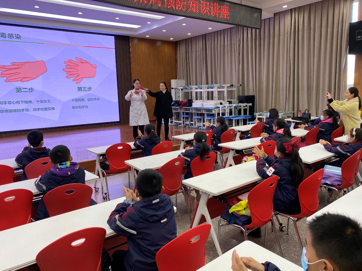 秋冬季呼吸道传染病的高发季节,针对当前依旧严峻的疫情防控形势,11月23日,护理学院温晓丽、王金库两位老师应邀为郑州市中原区育才小学高年级学生们开展了两场别开生面的趣味科普讲座。育才小学相关领导、教师代表以及400余名学生听取了讲座。