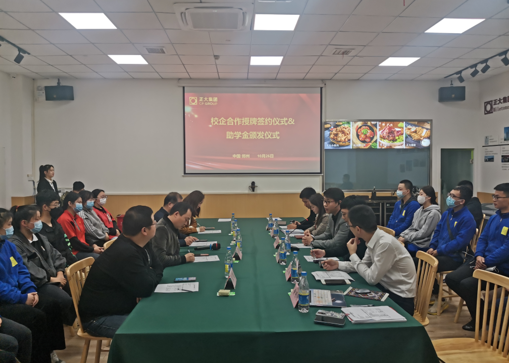 2021年10月26日下午,商学院与郑州正大卜蜂贸易有限公司校企合作授牌签约仪式暨助学金颁发仪式在正大卜蜂莲花举行。商学院院长孙勇、郑州正大卜蜂贸易有限公司总经理武磊、零售事业人力总监郑运东等出席授牌签约仪式。