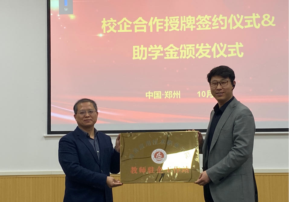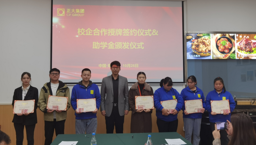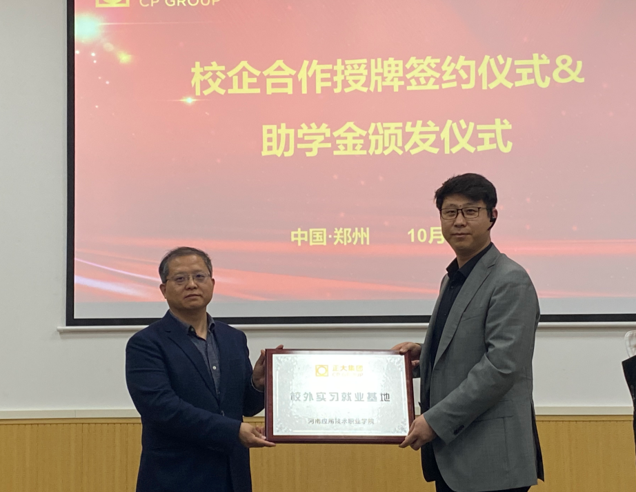 随后,双方举行了校企合作授牌签约仪式。武磊为优秀学生代表颁发企业助学金。商学院教师驻企工作站、人才培养基地、校外实习就业基地在郑州正大卜蜂贸易有限公司正式挂牌,这标志着校企双方在共同探索深层次融合上、合作方式、合作层次、合作领域又向前迈进一步。