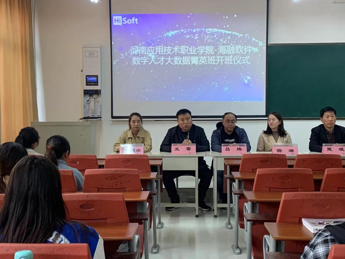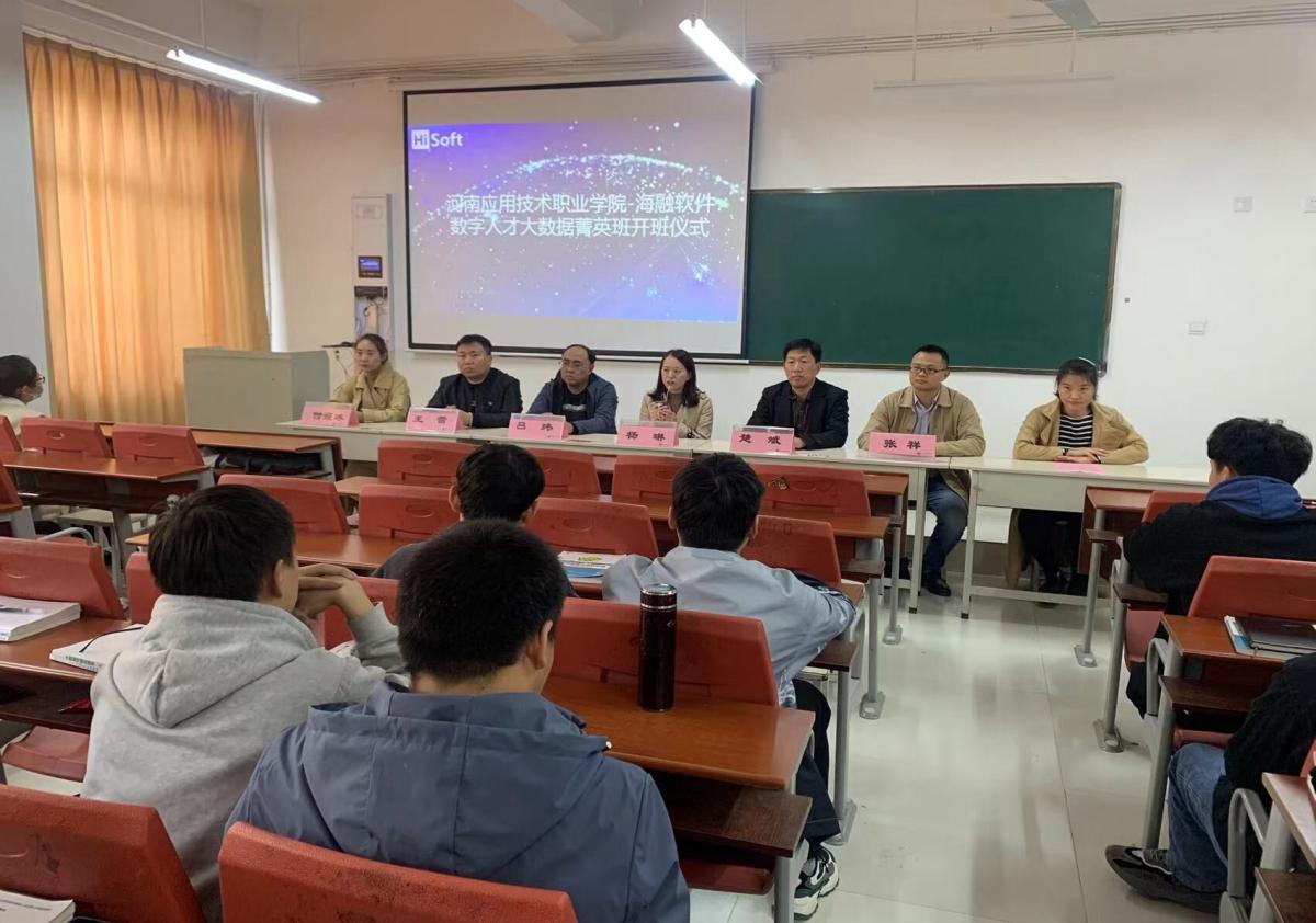 10月29日,信息工程学院“海融软件大数据人才箐英班"启动仪式在东校区教学楼102教室举行。学院领导、教务处领导、教师代表、企业代表应邀参加仪式,2020级大数据技术专业和计算机应用技术专业试点班全体学生参加了活动。仪式由信息工程学院王乐华老师主持。