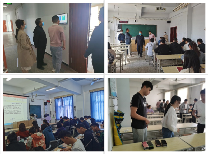 本科部党总支书记滕文锐、本科部主任刘新奇与相关负责人组成教学检查小组,深入课堂,开展恢复线下教学开学第一天的教学检查工作,对本科部教学运行和资源保障情况进行全面检查,保证教学各环节落实到位。