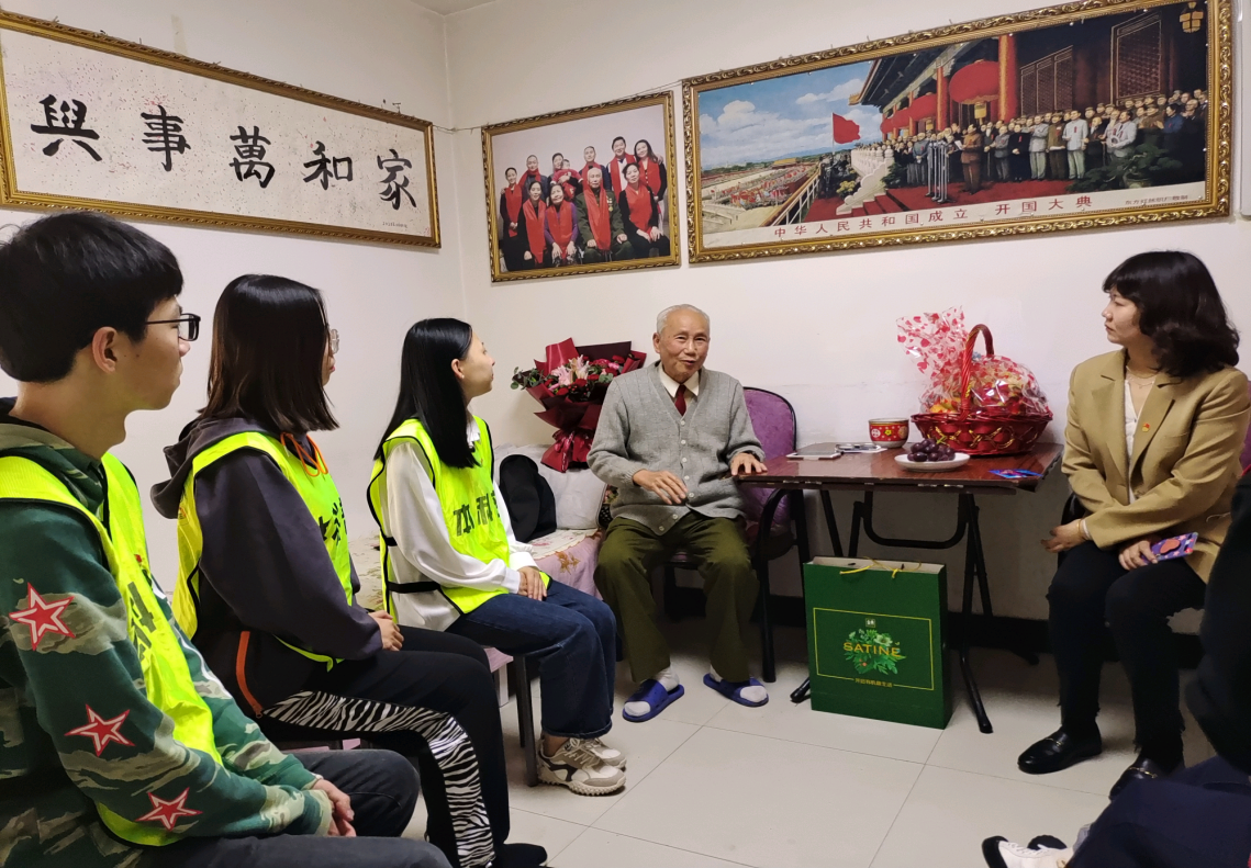 10月13日下午,在重阳节到来之际,本科部党总支青年党员志愿者们来到志愿军老战士赵金生家看望老人,带去本科部党总支全体师生的问候,以崇高的敬意致谢先辈为祖国和人民做出的伟大贡献。