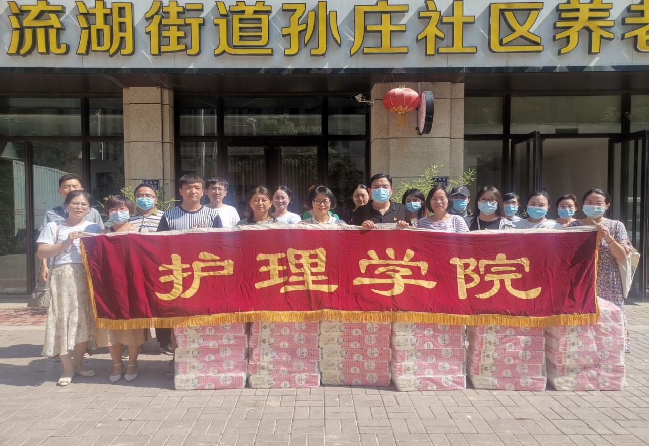 近日,河南各地持续遭遇强降雨,郑州发生严重内涝,防汛形势十分严峻,广大群众生活受到重大影响。2021年7月25日上午,护理学院党总支书记杨明杰、院长王风云带领护理学院党员及教师代表来到郑州市西流湖街道孙庄社区养老服务中心,看望慰问这里的孤寡老人,并为他们送去生活必需品。