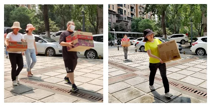7月26日,商学院党总支书记周燕带领部分党员老师来到绿都城社区,将一箱箱口罩、酒精、消毒液、碘伏、卫生纸、方便面等抗灾物资转交给绿都城社区爱心捐赠处,由绿都城社区工作人员统一将抗洪物资运送到受灾严重的浚县等地,为防汛工作奉献爱心。