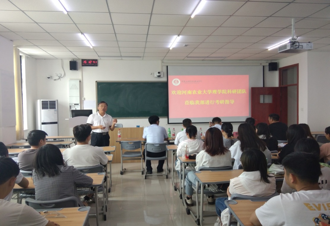 讲座上,郑昕教授分别从学科专业、师资实力、实验室设备、学院招生计划、导师情况、在读研究生的奖学金补助情况、毕业生就业前景等方面向大家介绍了河南农业大学的基本情况。他希望同学们脚踏实地学习,准确评估自我水平,争取考研一次成功。