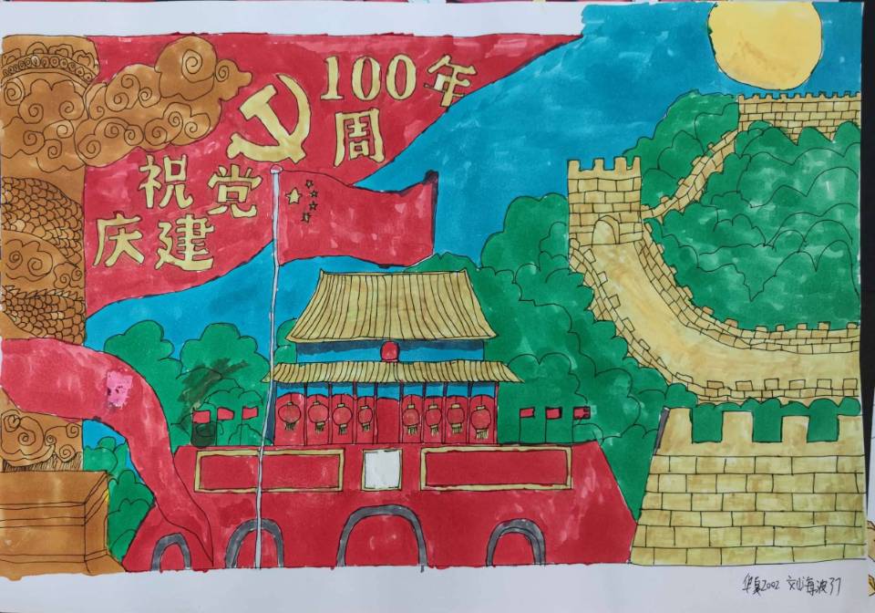 同学们踊跃参与,一幅幅热情洋溢、情感饱满的精品之作不断呈现出来。通过绘画作品,大家表达了对中国共产党百年华诞的美好祝福,对伟大祖国的深情告白。