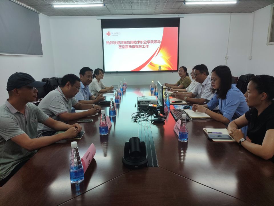 为深入贯彻《国家职业教育改革实施方案》,推进学校“双高”建设任务高质量建设,2021年7月15日下午,医药学院院长韩宝来、副院长刘佳、药品经营与管理教研室主任郭朝社、药学教研室主任吴妍、中药学教研室主任李东一行五人来到开封市高济百氏康医药连锁有限公司开展企业调研。