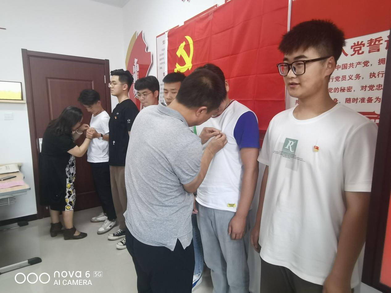 宣誓仪式在激昂慷慨的《国际歌》声中拉开序幕。化学工程学院院长朱冰领誓,新党员面对党旗举起右拳,庄严宣誓,老党员在党旗下重温入党誓词,自觉接受党性教育,用铮铮誓言表达对党的初心和忠诚。随后,老党员分别为新党员佩戴了党徽,任龙飞、刘海龙分别代表新老党员发言。