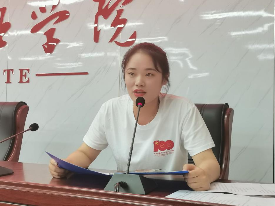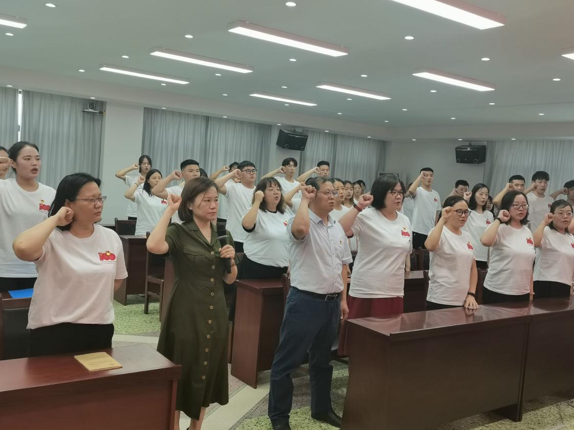 2021年6月17日下午,商学院党总支在一号实训楼六楼会议室开展“学党史读家书唱红歌亮身份宣誓言”主题党日活动暨新党员入党宣誓大会。商学院18级、19级64名预备党员及全体教师党员参会,商学院党总支书记周燕主持宣誓大会。