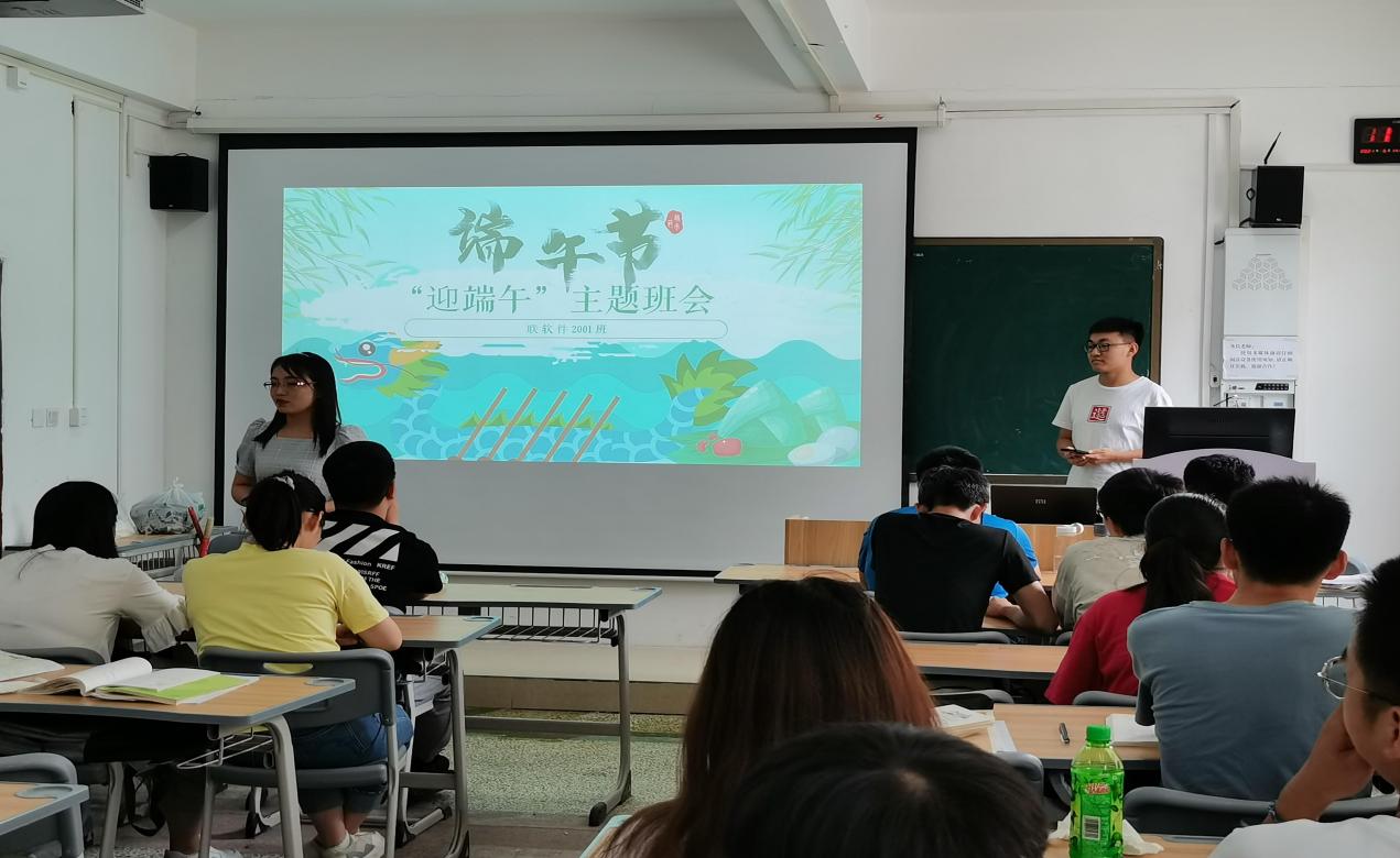 主题班会上大家一起追溯了端午节的由来,班长为大家讲述了屈原的故事,引出了形成端午节赛龙舟、吃粽子等各地不尽相同的民风习俗的原因,介绍了有关端午的“端阳”、“龙日”、“天中节”等不同内涵的名称,并引导大家齐声诵读与端午有关的诗词佳作,让大家感受到端午节的文化内涵与传统佳节的独特魅力,增强爱国主义情感。接下来,大家积极参与了击鼓传花、你画我猜、官兵抓贼等一系列小游戏。通过这些互动游戏,既活跃了班级气氛,又让同学们感受到了节日的欢乐。活动结束前,又为大家每人精心准备了各种口味的大粽子,除了每人一个粽子外,前面游戏中获胜的同学还可以获得额外的粽子作为奖励,大家开心地品尝着美味可口的粽子,感受着浓浓的传统文化。最后,辅导员张艳艳为此次主题班会活动做了总结。