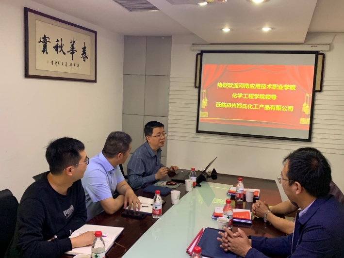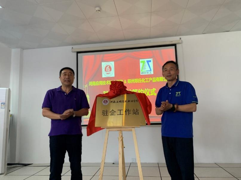 5月22日,我校化学工程学院与郑州郑氏化工产品有限公司举行校企合作签约暨“驻企工作站”揭牌仪式,化工学院党总支书记蔡庄红、院长朱冰、郑氏化工总经理郑先祥及各部门负责人参加了会议,会议由郑先祥主持。
