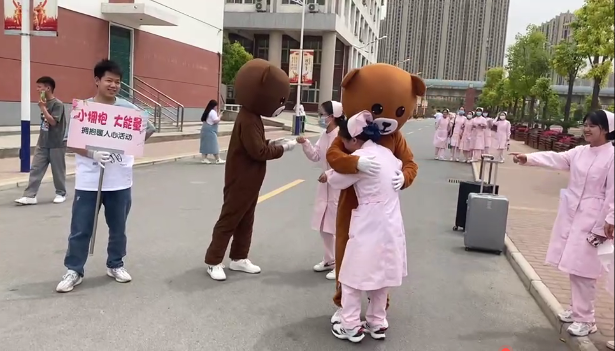 活动现场,志愿者身穿人偶服与过往同学进行拥抱,通过给过往的陌生同学“拥抱”这一举动,让同学们感受温暖、体味支持、汲取力量。活动现场气氛热烈,不断有同学主动上来拥抱,还有过往的老师也参与到了活动中去。通过本次活动旨在让同学们学会在生活中用“微笑”、“问候”、“拥抱”去温暖他人,给别人温暖和力量同时也让自己收获更加阳光的心态。