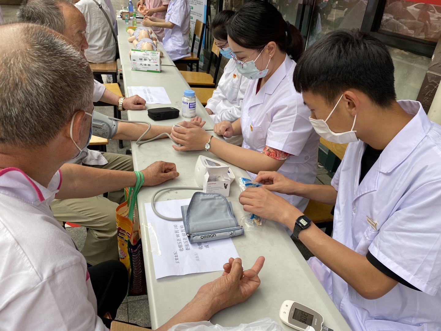 活动现场,志愿者为社区广大居民普及心搏骤停后紧急救援措施--心肺复苏技术。现场群众切身感受到了心肺复苏的实用性和重要性。同时,免费为社区居民提供测量血压、血糖及刮痧、艾灸、贴耳穴等特色护理服务,向广大居民讲解夏季常见疾病的防治,耐心解答社区居民中医保健和养生知识,并为他们送去了一份夏日清凉守护--风油精。烈日下持续工作三个多小时的师生志愿者们既忙碌又幸福,他们耐心、细心及专业的服务受到了社区领导、居民的一致好评。
