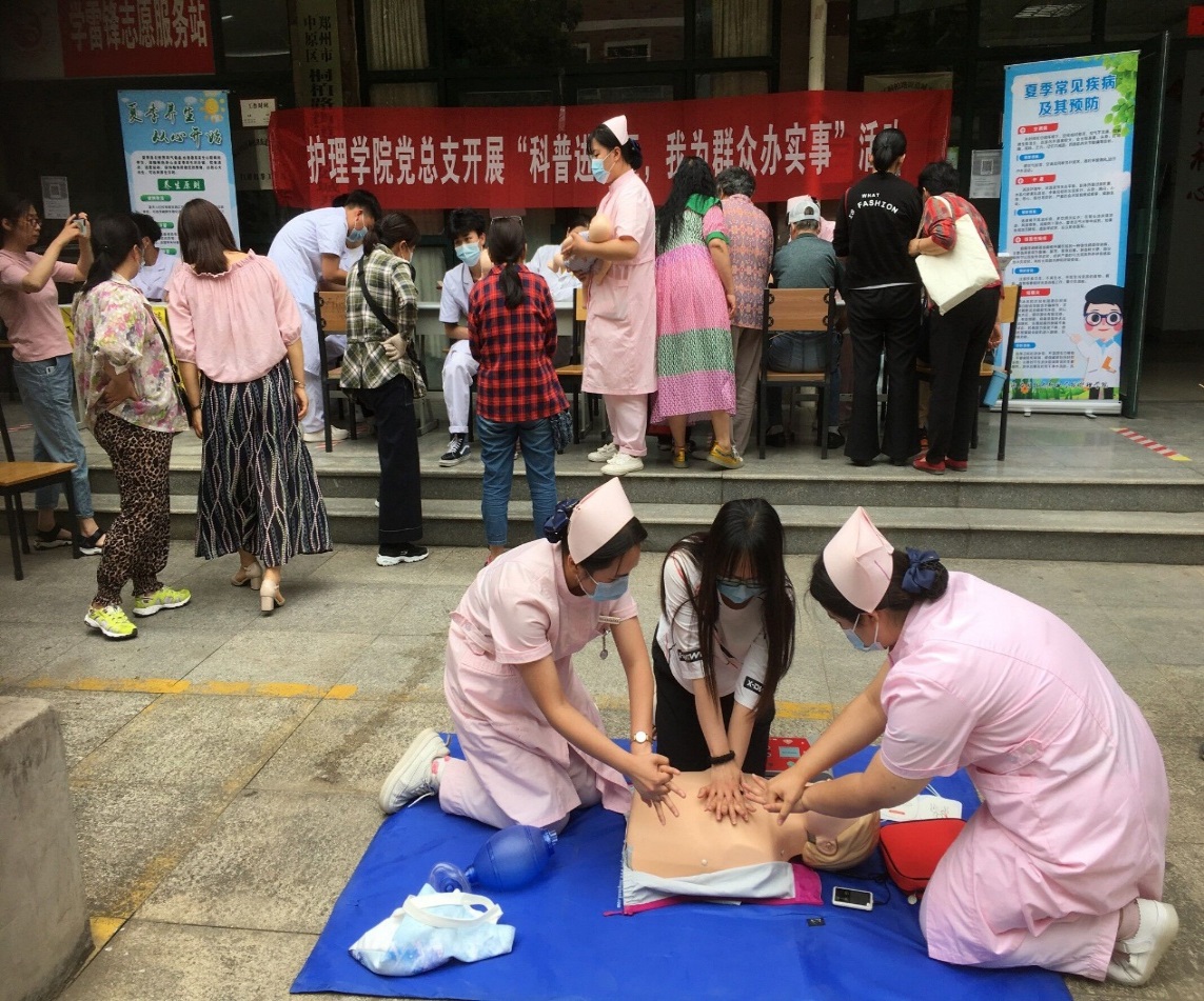 为进一步深化党史学习教育,推动科普惠民行动,2021年5月25日下午,护理学院党总支组织师生党员到郑州市中原区城开社区,开展“科普进社区,我为群众办实事”主题党日志愿服务活动。