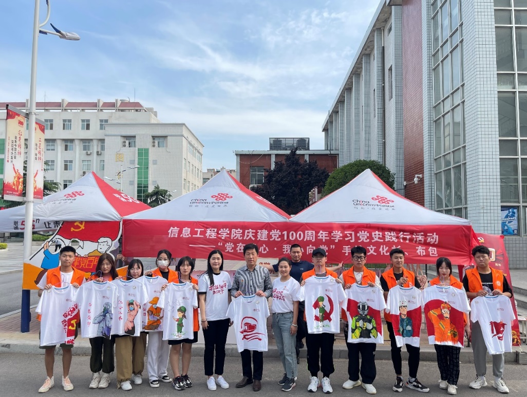 为深入推进党史学习教育,开展“我为群众办实事”实践活动,5月11日—13日信息工程学院党总支举办了主题为“党在我心·我心向党”的手绘文化衫、布包义卖活动。本次活动共分为现场义卖、个性定制、资金捐赠三个阶段。
