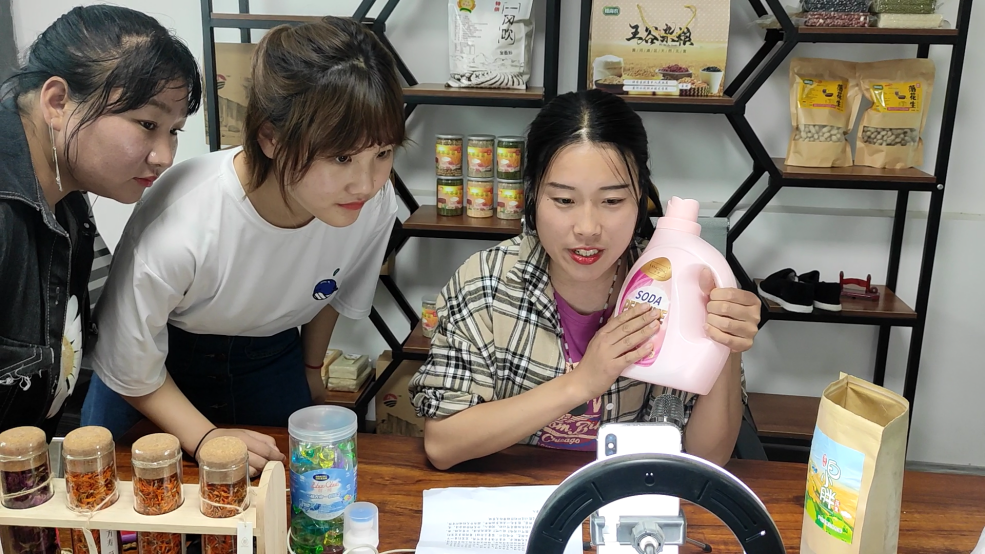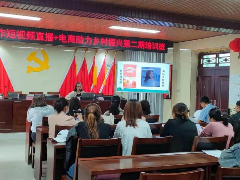 2021年5月19日,我校商学院电子商务技术服务队再次来到开封市祥符区刘店乡授课。本次服务队由吴昀老师带队,电商工作室创客角的段笑迎、田奥奇同学分别作为主播助教和短视频助教,对乡民进行实践指导。