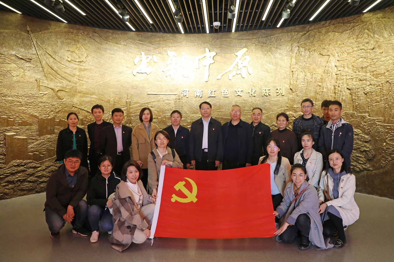 为迎接党的百年华诞,教育引导全体党员干部坚定理想信念、牢记初心使命,从党的光辉历史中汲取精神力量,2021年4月25日我校机关第一党总支全体党员到河南博物院集体参观《出彩中原——河南红色文化陈列展》,感悟红色力量,传承红色基因。校党委书记闫俊山,党委副书记蒋清民、朱东方,纪委书记陈雅莉参加此次活动。