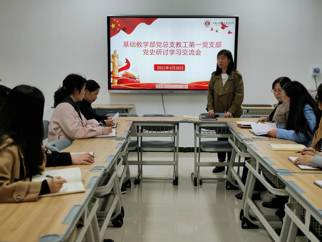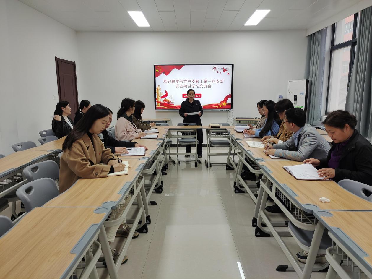 为扎实开展党史学习教育,进一步感悟思想伟力,增强用党的创新理论武装全体党员教师的政治自觉,2021年4月20日下午,基础教学部党总支分别在西校区办公楼110活动室和东校区307室开展了“学党史、悟思想”党史学习交流研讨活动。