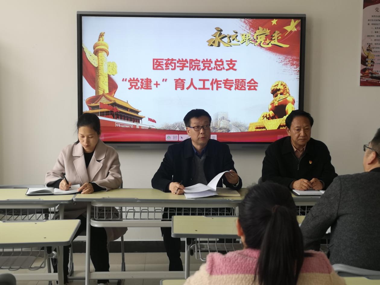 为了深入贯彻习近平总书记在全国高校思想政治工作会议上的讲话精神,医药学院党总支勇于探索新时代党建工作与学生工作的结合点,创新"党建+"育人工作理念。4月1日中午,医药学院党总支在408会议室召开“党建+”育人工作专题会议,学院全体党员教师参加了会议。