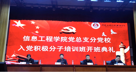 按照《中国共产党章程》和《中国共产党发展党员的工作细则》要求,为教育引导我校入党积极分子进一步掌握党的知识,提高思想理论水平,进一步端正入党动机,切实保证新发展党员质量。信息工程学院党总支分党校于2021年3月23日中午12点30分,在大礼堂举行了2021年度入党积极分子培训班开班典礼,信息工程学院党总支书记楚斌、院长王雷、副院长崔琳、教师代表及204名入党积极分子出席本次典礼。
