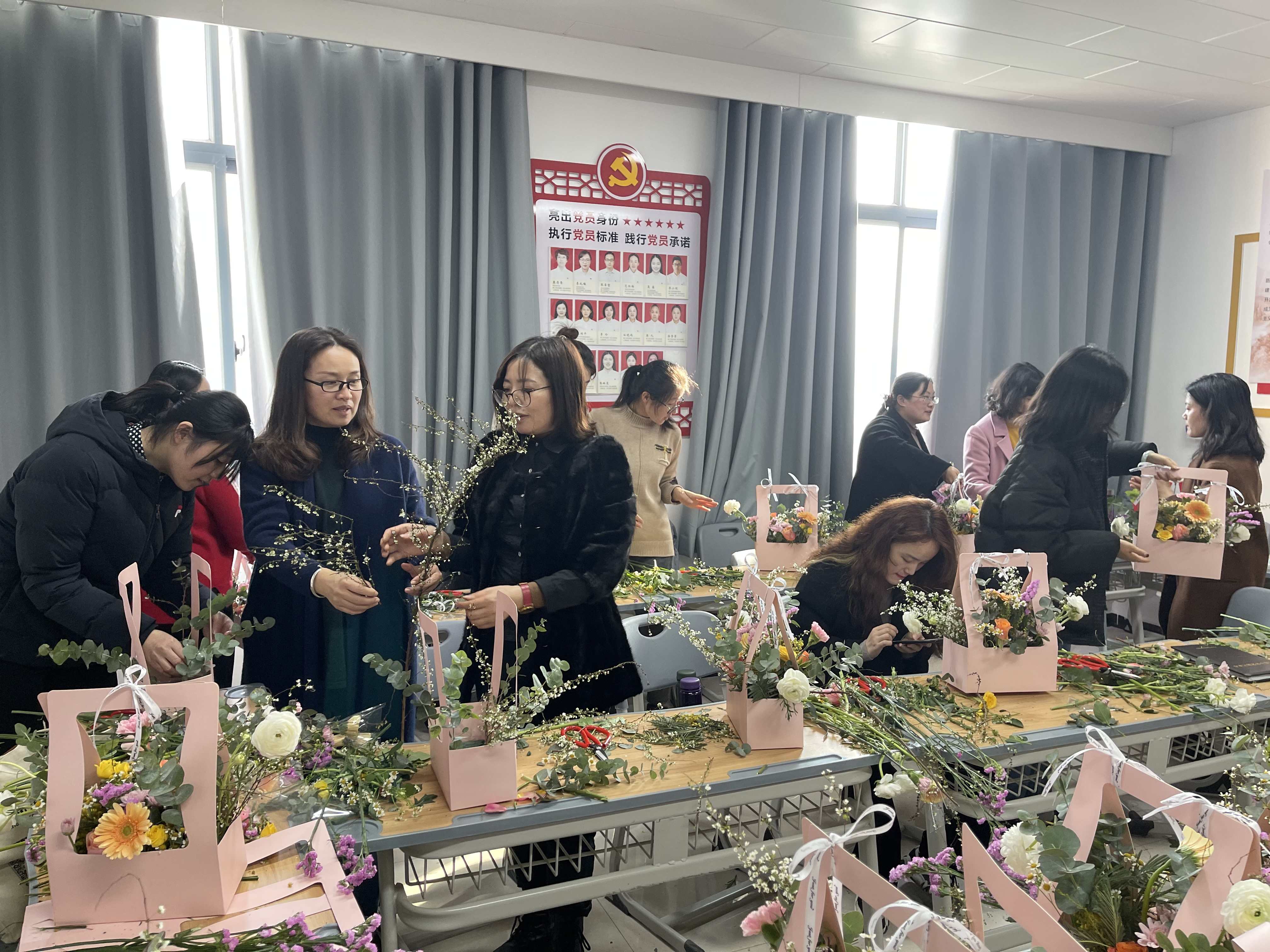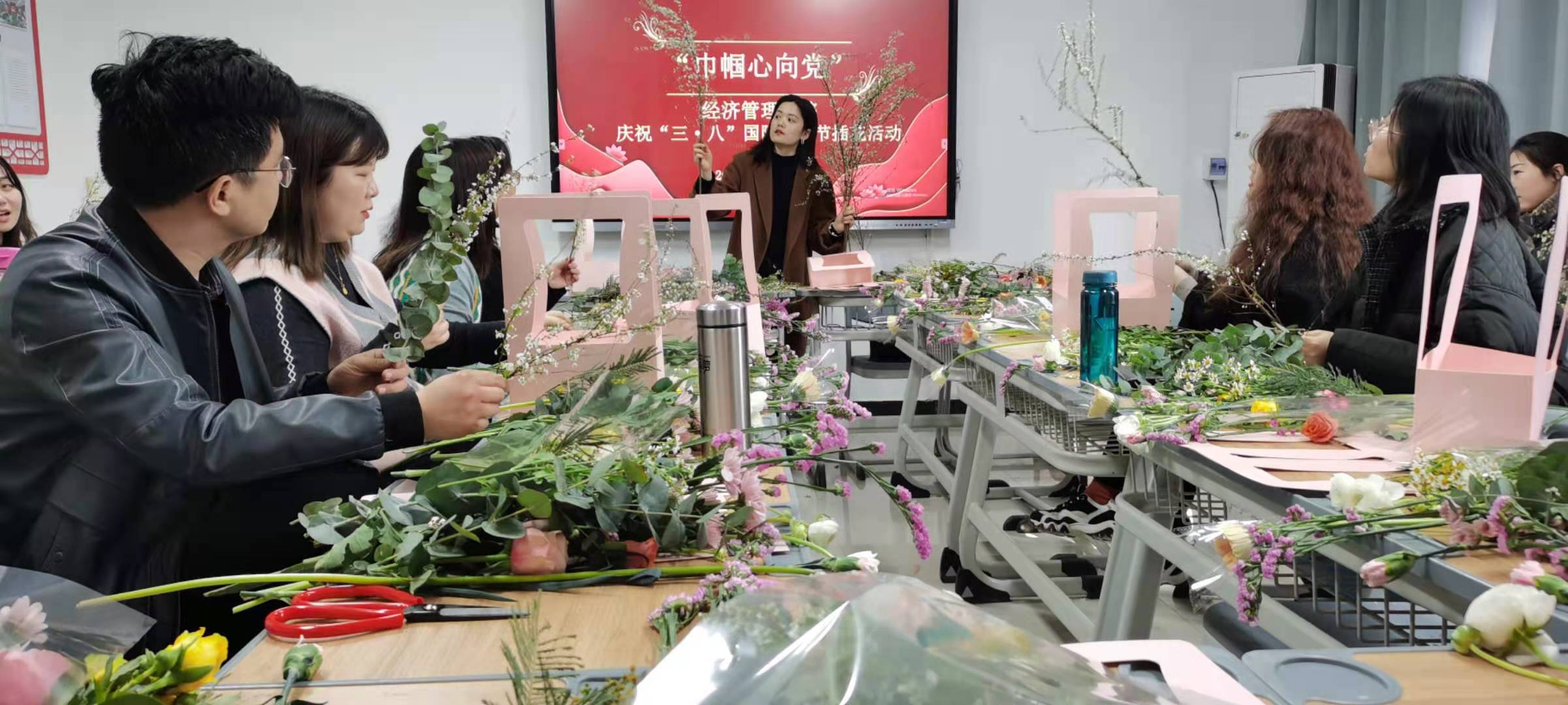 为纪念“三八”国际劳动妇女节111周年,丰富女教工的文化生活,更好地展现女性的风采,2021年3月8日下午,经济管理学院组织开展“巾帼心向党”庆祝“三八”国际妇女节插花体验活动。