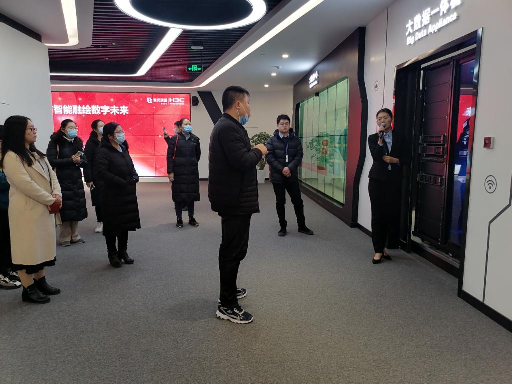 在H3C集团教育行业销售总监张少华带领下,信息工程学院教师一行7人参观公司展厅,了解H3C集团的背景,主要业务开展情况以及在大数据、云计算和人工智能方面取得的成果。王雷院长就信息工程学院基本情况做了简要汇报,介绍学院大数据专业、计算机网络技术专业和人工智能专业开设情况和专业特色。与会人员就当前大数据和人工智能的行业动态、人才需求、培养趋势、校企合作等助力大数据人才培养的相关情况深入交流,对进一步加强合作,共同培养技能型人才充分交换了意见。