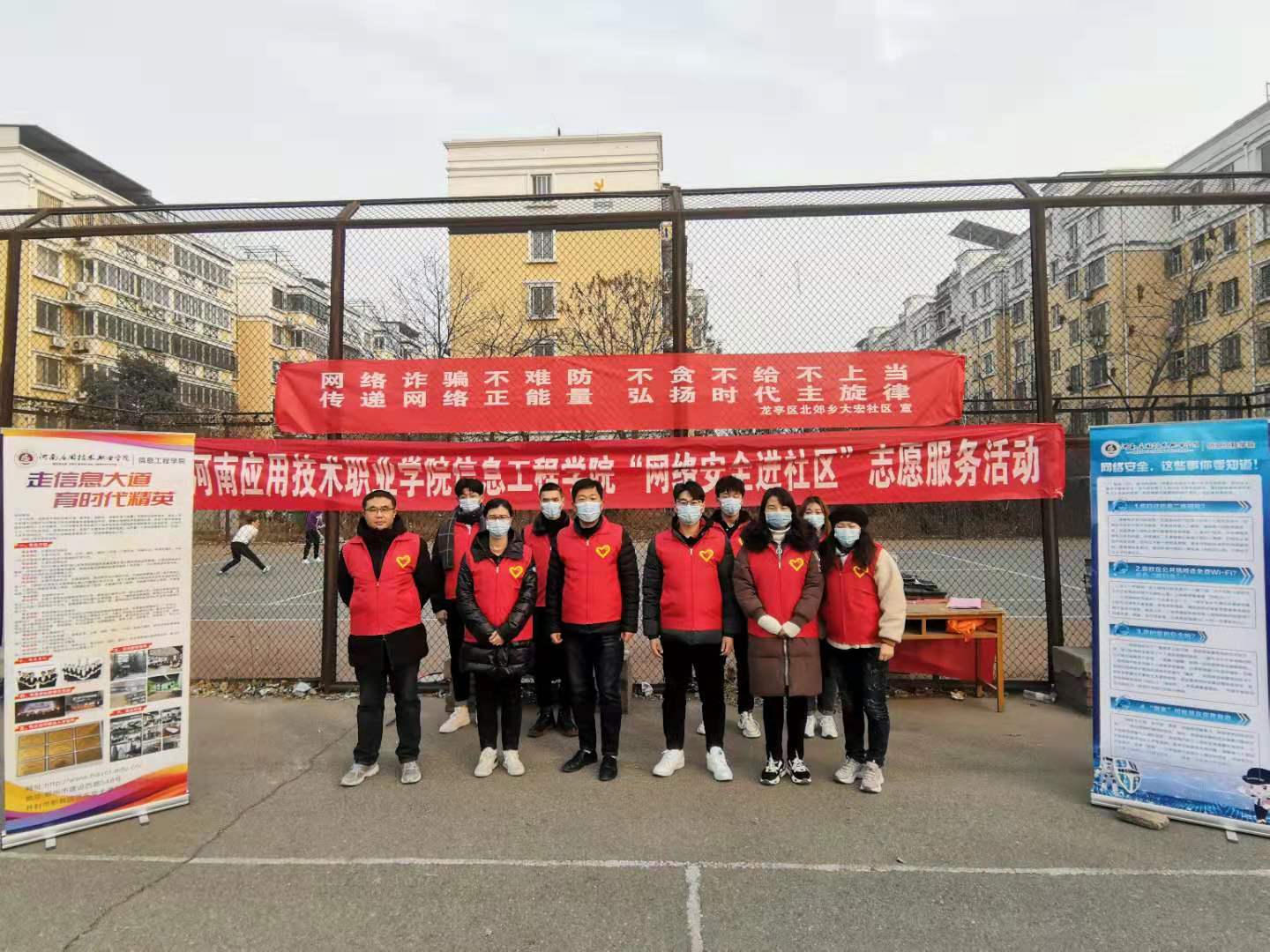 为宣传网络安全知识,提升居民网络安全意识和防护技能,营造风清气正的网络空间,2020年12月18日下午,信息工程学院党总支楚斌书记组织部分教师党员和学生入党积极分子10余人,联合开封市大宏社区工作人员开展了“网络安全进社区”志愿服务活动。