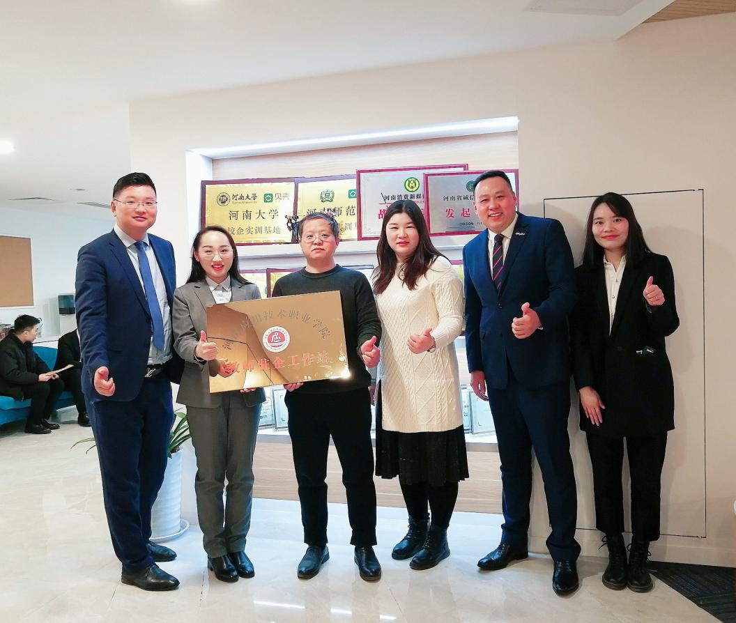 12月29日上午,商学院教师驻企工作站挂牌仪式在河南贝壳信息技术有限公司举行。商学院院长孙勇、贝壳公司经济增长中心总监边尚冰、市场研究院院长丁赞及德佑品牌总经理赵英杰等出席挂牌仪式。