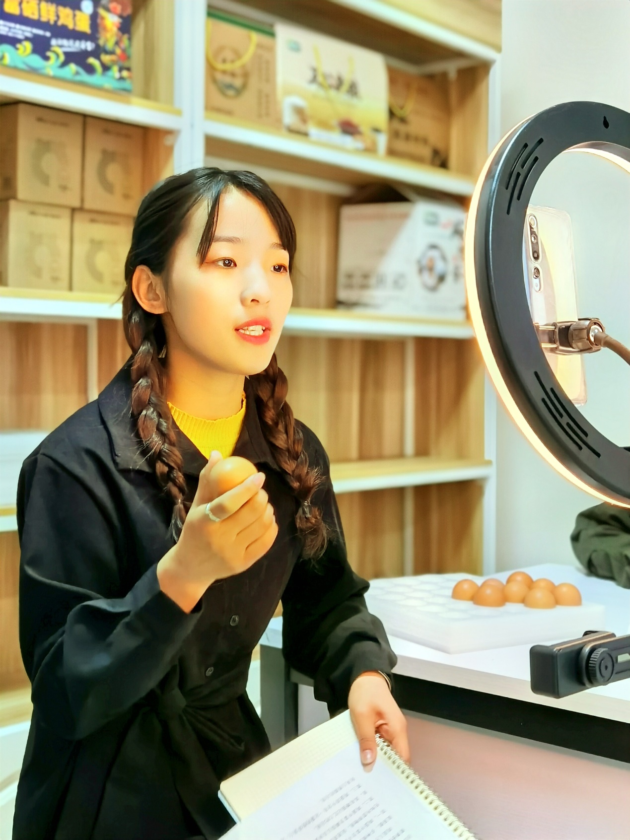 2020年11月8日,在商学院电子商务创客角,来自电子商务、市场营销、连锁经营等专业的11名新人主播,在2号实训楼进行直播实践。本次带货的产品是正大集团的富硒鲜鸡蛋,主播们从企业背景、产品卖点、食用方法、营养价值等多方面为顾客介绍产品,很多主播虽然是第一次上播,却能流利地介绍产品,亲切与粉丝互动,并回答粉丝提出的各种问题,把控直播节奏。