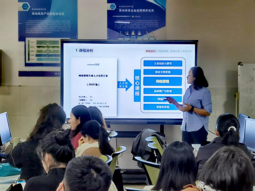 研讨开始,吴昀老师代表电子商务教研室分享了《网络营销》理实一体化改革方案,从课程分析、教学目标、教学方法和课程方面,剖析了理实一体化改革的重点和难点。
