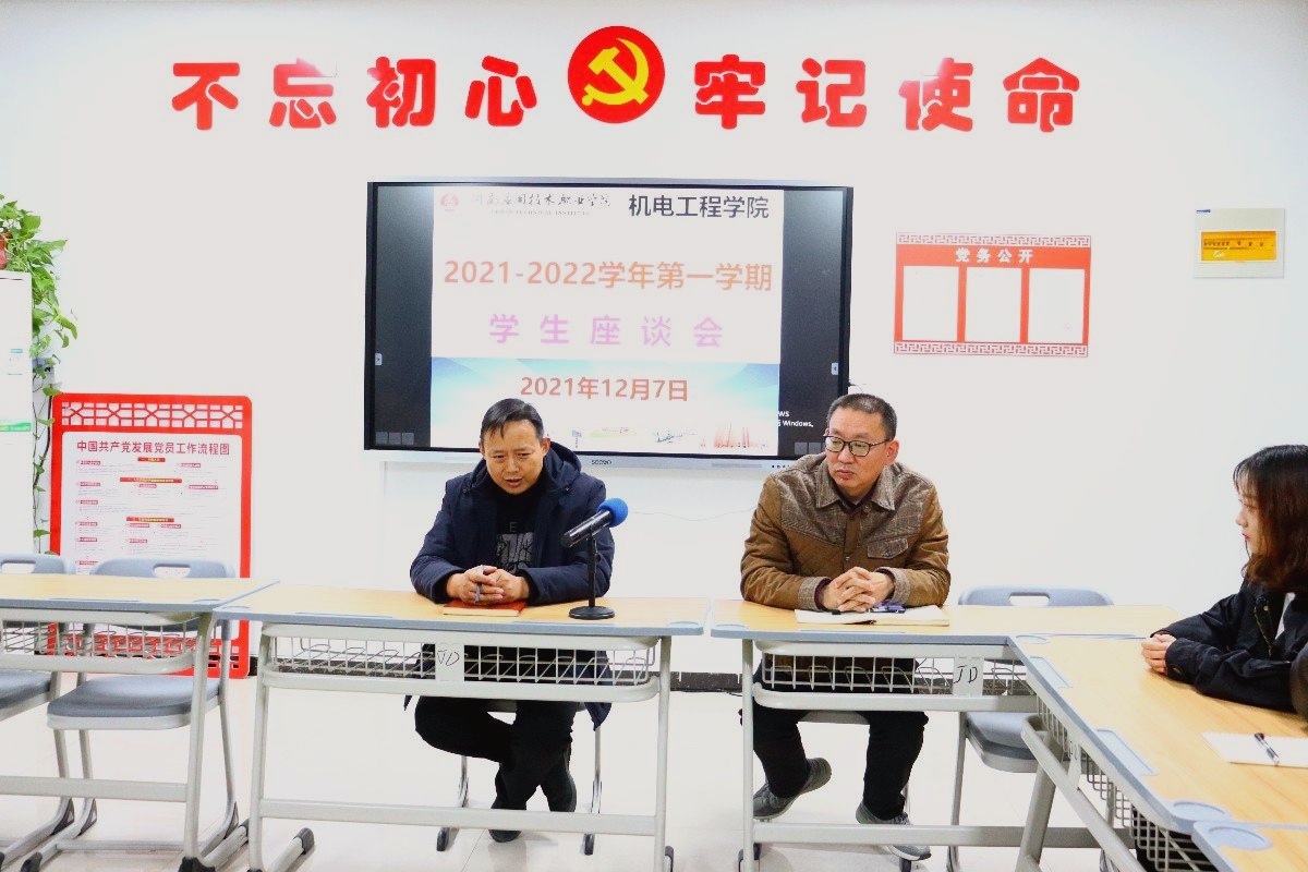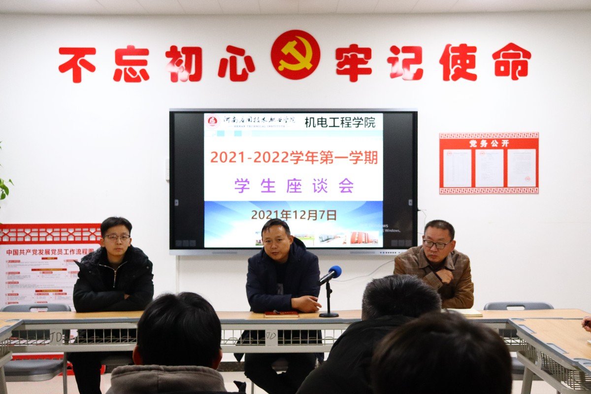 为进一步了解学生需求,提升机电工程学院教育教学质量,2021年12月7日,机电工程学院召开2021-2022学年第一学期学生座谈会,院长黄双成、副院长李凤银、办公室主任张翼飞及各班级学生代表参加了此次座谈会。