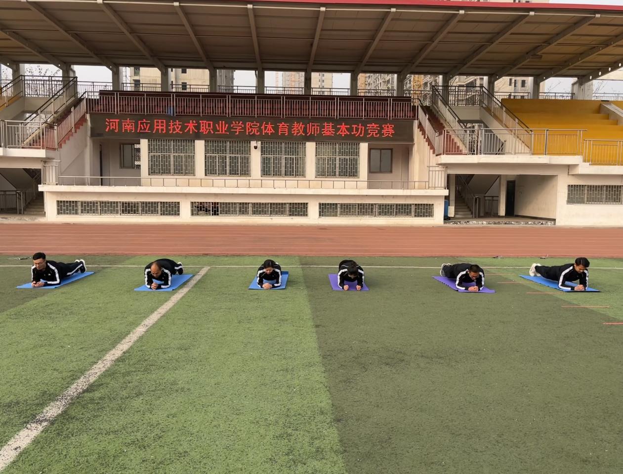 本次竞赛按照河南省体育教师基本功比赛规程设置了技能1(太极拳、健美操、啦啦操)任选一项,技能2(篮球、排球、足球、乒乓球、羽毛球、网球)任选一项,体能1平板支撑,体能2一分钟跳绳四个竞赛项目。竞赛中教师们竭尽全力、奋勇拼搏,用过硬的专业技能、扎实的基本功展示了体育教师的专业素养。最终经过评比,张敏等两位教师获一等奖,丁鹏飞等四位教师获二等奖。