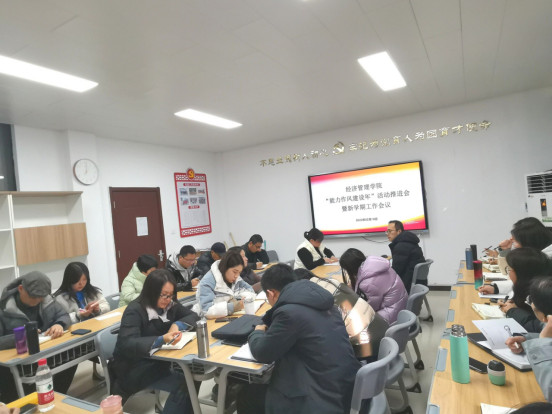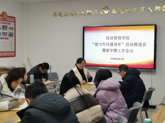为贯彻落实省委、省高校工委和学校党委关于开展“能力作风建设年”活动要求,动员学院上下迅速归岗收心,确保新学期各项工作有序开展,2022年2月18日,经济管理学院召开“能力作风建设年”活动推进会暨新学期工作会议。会议由学院党总支书记李兆楠主持,学院全体教师参加会议。