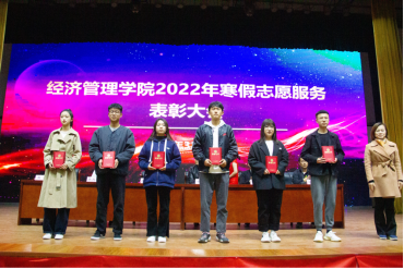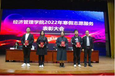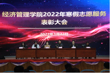 为进一步弘扬志愿精神,引导广大师生树立服务意识,激励全院师生以昂扬姿态迈向新的一年,2022年3月8日,经济管理学院在学生活动中心召开2022年寒假志愿服务表彰大会。校宣传部副部长周燕、校团委书记张凡、经济管理学院党总支书记李兆楠、院长张召哲、学工办主任张昂出席会议。会议由经济管理学院团总支书记聂蕴主持。