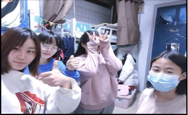 每天晚上宿舍楼闭寝后,同学们在班级QQ群里以寝室为单位进行“创意”打卡拍摄视频或照片,确保宿舍每位成员出镜,汇报在寝情况。同学们自创的各种花式动作,在班级群内不断引起欢声一片,大家都说:“这样的查寝方式太好玩了!好好想想明天怎样摆拍!”。这样的查寝方式为同学们的校园生活增添了一丝欢乐,让同学们因疫情而紧张的情绪有了一些缓解,同时也提高了同学们的防疫意识,让大家更加重视疫情防控,查寝进行的非常顺利!