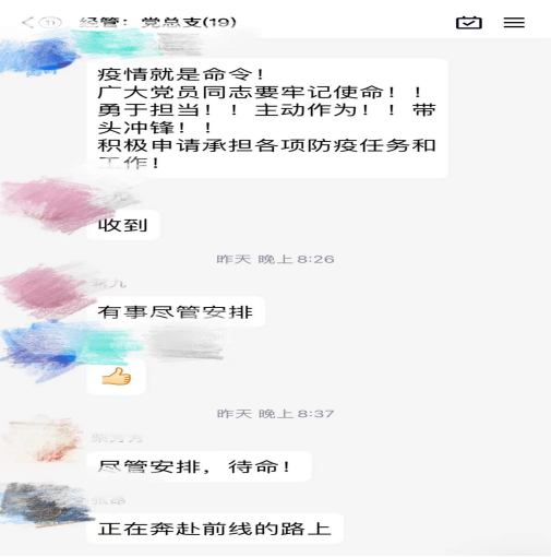 “疫情就是命令!广大党员同志要牢记使命!积极承担各项防疫任务和工作!”院长张召哲发出集结号令。“收到,有事尽管安排!”“尽管安排,待命!”“正在奔赴前线的路上!”......5月3日晚上10点,15名党员教师接到消息,没有任何犹豫,立刻收拾行李,甚至来不及和家人解释,火速赶往学校,在办公室简单安顿,做好了“以校为家”的准备。