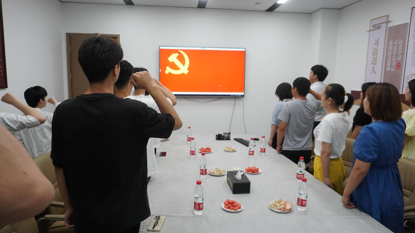 在马春燕的领誓下,党员教师、预备党员学生重温入党誓词,大家高举右拳,用铿锵有力的声音表达了自己对党和人民做出的承诺。