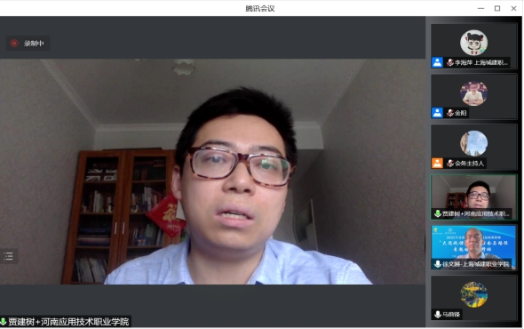 研修期间,我校马院参训教师就有关主题开展了线下讨论,并在线上和专家进行了互动。在结业仪式上,马院教师贾建树代表学校作交流发言。他向参训的上海高职高专院校思想政治理论课建设联盟院校介绍了我校办学亮点和马院基本情况,同时表示,深感建设“大思政课”责任重大,在以后的工作和学习中要牢记立德树人根本任务,通过教学视野前移,教学思维放宽,教学眼光高远,落实“大思政课”要求,努力做一位可信、可敬、可靠,乐为、敢为、有为的思政课教师。上海城建职业学院马克思主义学院院长徐文越教授听完贾建树的发言后,对我校思政课建设给予了高度评价。