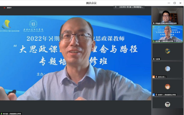 本次研修班由上海高职高专院校思想政治理论课建设联盟、上海城建职业学院主办,上海城建职业学院马克思主义学院承办,全程采取腾讯会议线上方式进行。复旦大学马克思主义学院教授、博士生导师、教育部高校思政课教指委副主任、“高职高专思政课”分教指委主任委员高国希出席开班仪式并致辞。