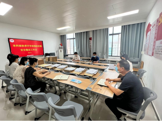 8月24日,本科部在党建活动室召开秋季开学疫情防控暨安全稳定工作会。本科部全体教师参加会议,会议由党总支书记滕文锐主持。