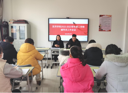 2月14日下午,医药学院召开了2022-2023学年第二学期第一次辅导员工作会议。全体学管人员和专兼职辅导员参会,会议由党总支书记崔咏梅主持。