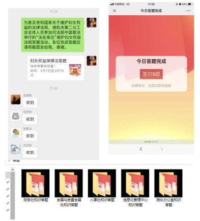 为普及党和国家关于维护妇女权益的法律法规,机关第二分工会组织全体人员参加了司法部中国普法举行的“法在身边”维护妇女权益法规答题活动。通过答题活动普及了法律知识,增强了法治意识,强化了法治情怀,自觉做尊法守法的模范,成为社会主义法治的忠实崇尚者、自觉遵守者和坚定捍卫者。