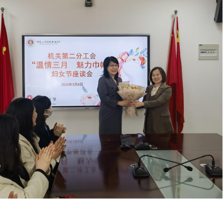 3月7日下午,机关第二分工会在郑州校区办公楼315会议室举行了“学习二十大·巾帼心向党”交流分享会。会上,与会人员认真学习了党的二十大精神和习近平总书记关于维护妇女权益的重要讲话精神。参会的女教职工代表结合自身实际,分享了教书育人、服务师生的体会,并对今后工会活动提出了建设性意见。院长办公室主任黄体锐代表机关第二分工会向全校女教职工致以节日的问候和衷心的祝福,对女教职工为部门工作和学校事业发展作出的贡献、付出辛劳表达感谢。同时,也对女教职工提出三点建议:一是提高政治站位,做建功立业的奋斗者;二是培塑好家风,做幸福生活的呵护者;三是关爱自己,做健康身体的守护者。奋斗新时代,开启新征程,在新起点上,他希望分工会的女教职工继续牢记初心,勇担使命,为学校事业发展作出新的贡献。
