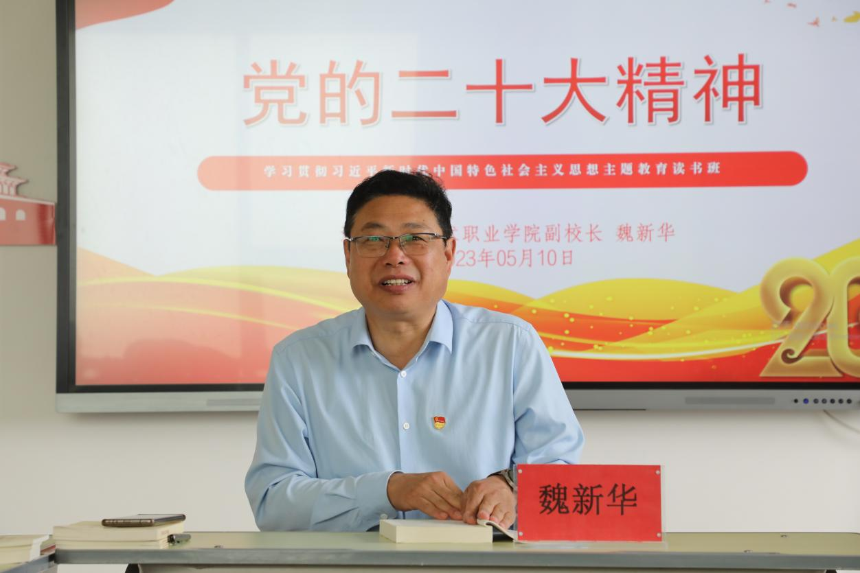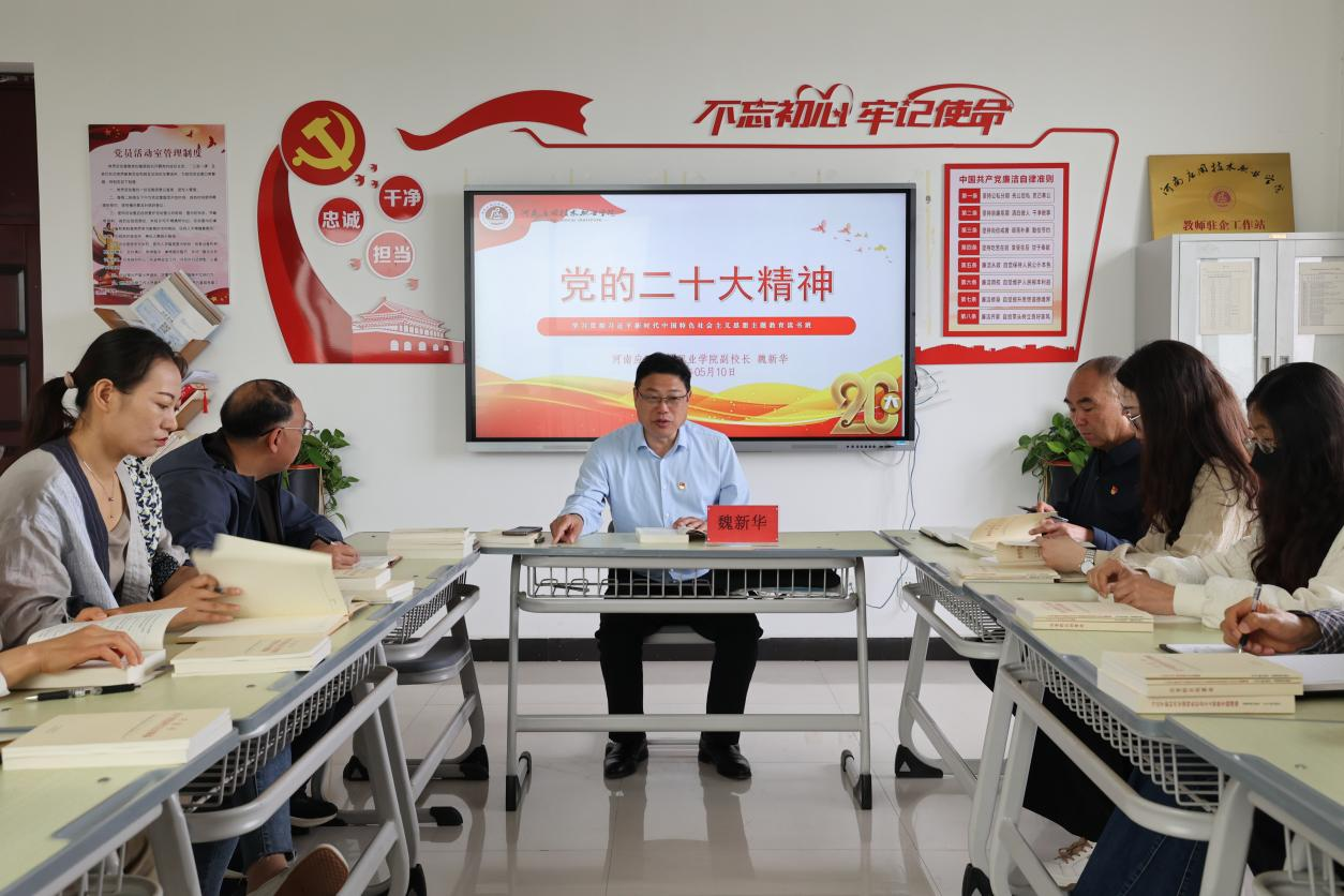 5月10日上午,制药工程学院党总支在开封校区(南院)开展学习贯彻习近平新时代中国特色社会主义思想主题教育读书活动,河南应用技术职业学院副校长魏新华带领制药工程学院党总支全体教职工就党的二十大精神中的新观点、新思想、新论断等重点内容进行领学,深度解读了“两个维护”。