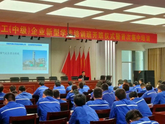 开班仪式上,郭开宏围绕企业开办新型学徒制培训重要意义对学员做了动员。他表示,河南中源化学非常重视高技能人才培养工作,结合新项目、新设备、新工艺的特点开展专业培训,打造一支技能精湛的人才队伍,让每一位员工能够真正的站得稳、留得住、走得远,希望学员能够珍惜机会,严肃学习纪律,学有所获。集团公司一定会全力支持和配合培训班的教学和管理工作,相信在双方的共同努力下,校企融合会更加紧密,联合培养出创新型高技能人才,服务于社会的长远发展。